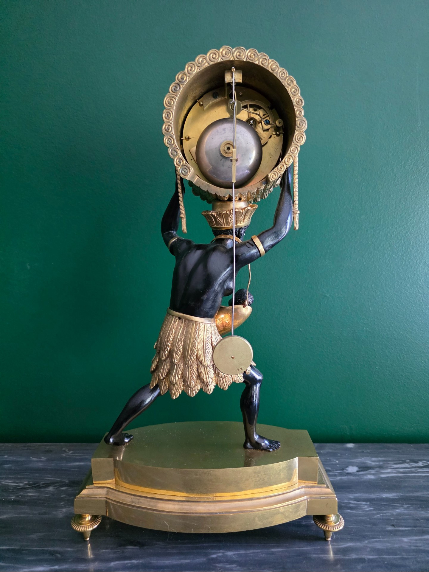 Rare pendule dite à "La nourrice Africaine" en bronze doré et patine brune d'époque Empire.