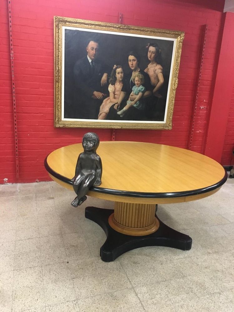 Grande Table Gueridon neo classique En Chêne Clair Et Chene Noirci Circa 1940/1950 Attribuée à Decoene Frere
