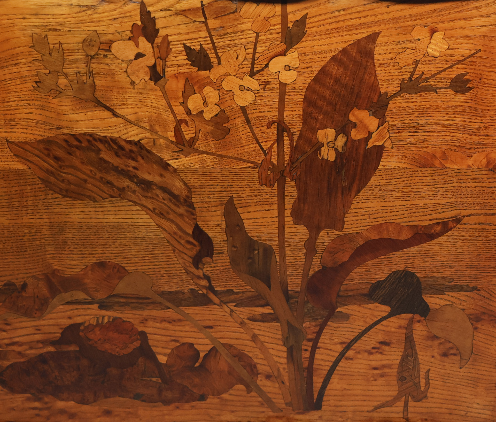 Plateau japonisant à décor de marqueterie florale.
