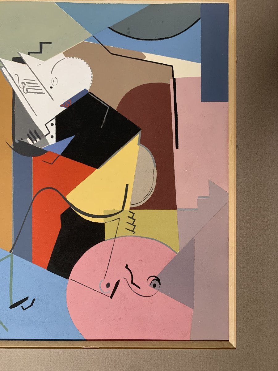 Albert Gleizes (1881-1953)  Le musicien Gouache Moderne Cubiste XXeme Siecle