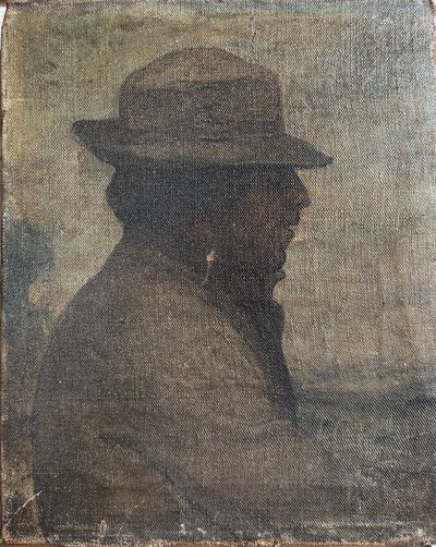 Ecole française ou belge du 19ème siècle - Portrait d'homme au chapeau / Insc sur chassis