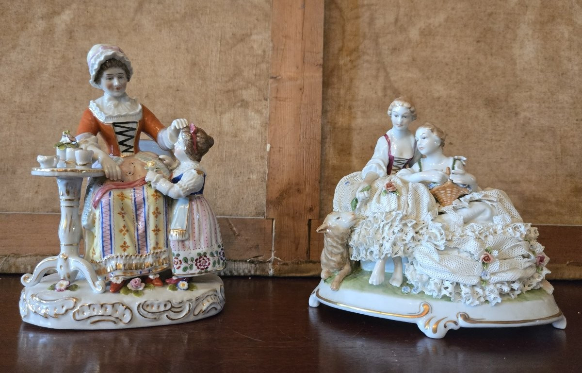 Lot de 2 groupes en porcelaine – Scènes galantes et scène familiale - XXeme