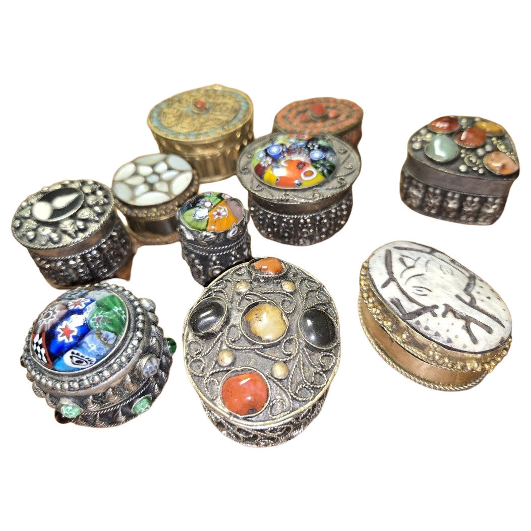 10 orientalistische Pillendosen aus Silber und versilbertem Metall