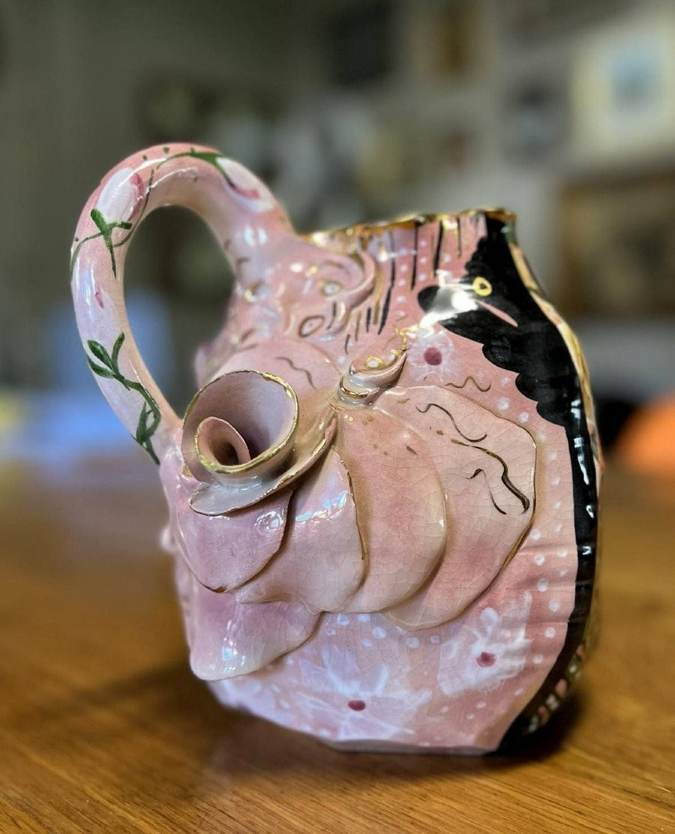 Laney K. Oxman: Mehrfarbiger Keramikkrug Und Barbotine