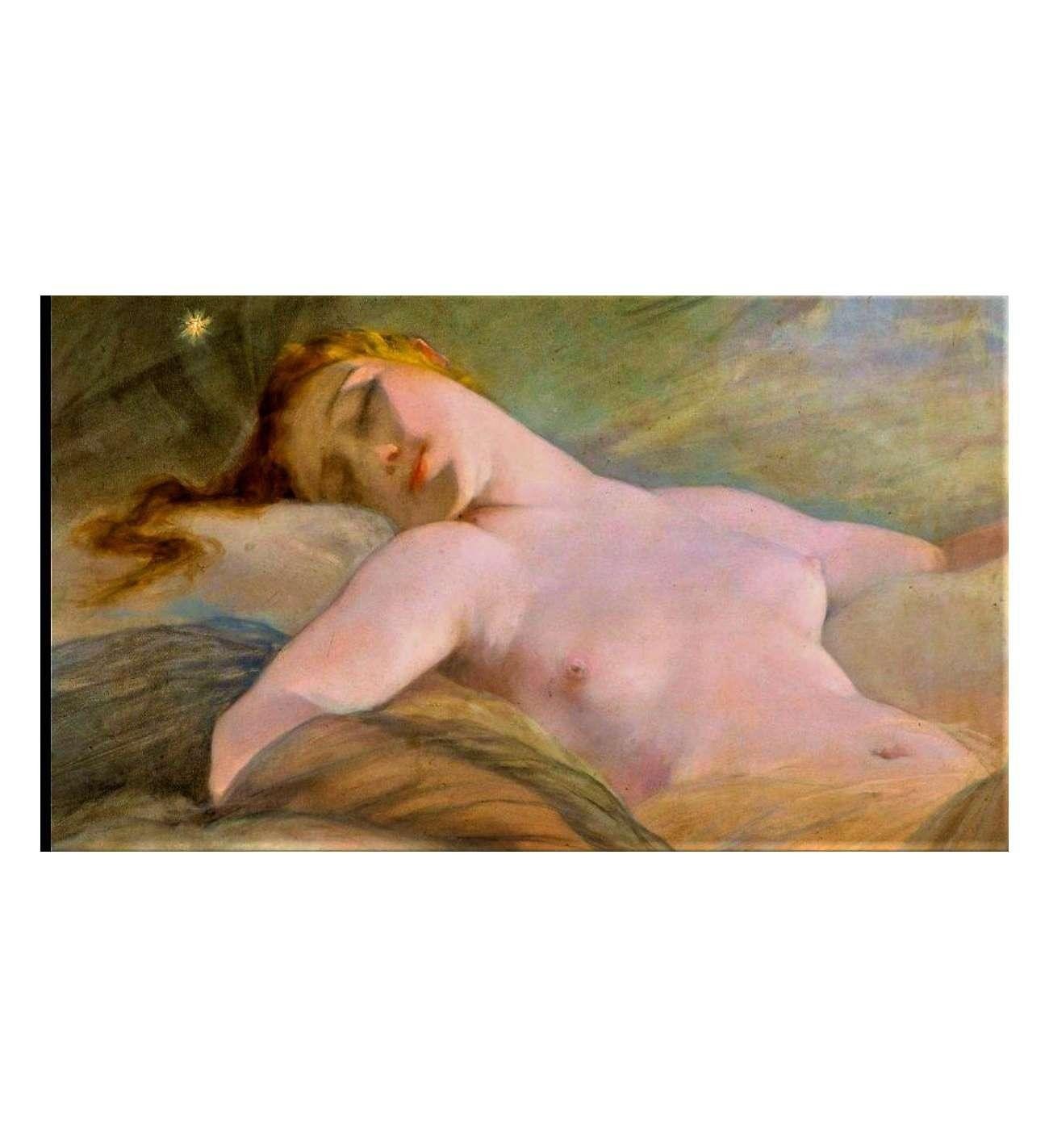 Charles Joshua Chaplin besuchte dieses Thema später erneut und schuf eine größere Version desselben Gemäldes auf Leinwand.Monogramm in der unteren linken EckeName und Unterschrift auf der RückseiteRiss im Panel / restauriertEingebettet in einen modernen RahmenObwohl er in einer Zeit in Frankreich arbeitete, in der junge Künstler versuchten, die Traditionen herauszufordern, blieb Charles Chaplin der Tradition des 18. Jahrhunderts der schönen Frauen im Boudoir, wie sie François Boucher und Antoine Watteau pflegten, verpflichtet. Chaplin wurde aufgrund der Eleganz seiner Darstellungen und seines Rückgriffs auf die Stile der Vergangenheit, die während des Zweiten Kaiserreichs und der Dritten Republik ein Comeback erlebten, zu einem gefragten Künstler. Tatsächlich kann man davon ausgehen, dass Chaplin zum erneuten Interesse am 18. Jahrhundert beigetragen hat, einer Tradition, die unter anderem durch die Schriften und Theorien von Edmond und Jules de Goncourt vorangetrieben wurde.