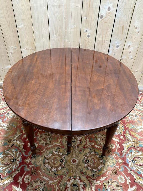 Ovaler Mahagoni -Esstisch mit seinen schönen gedrehten Füßen, die auf Rollen enden.