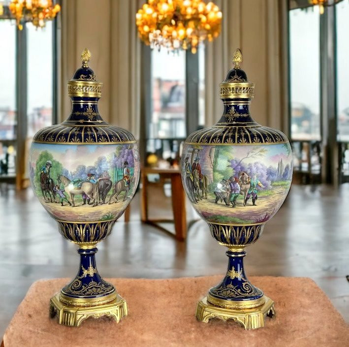 Großes Paar Vasen Aus Sèvres-Porzellan "Stempel Château Des Tuilerie "xixe