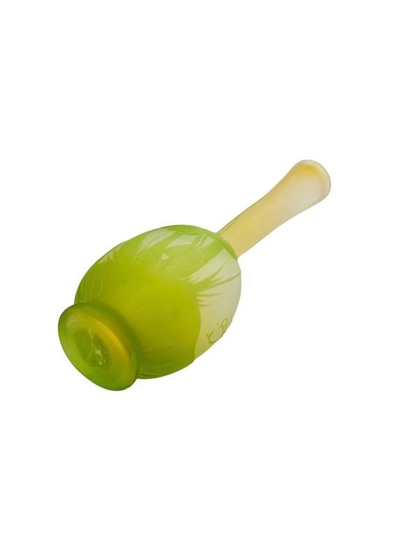 Charming small double-glazed soliflore vase, featuring a rare acid-etched decoration of mushrooms and green foliage on a yellow and white satin background. Signed Gallé with a star. Beautifully luminous!