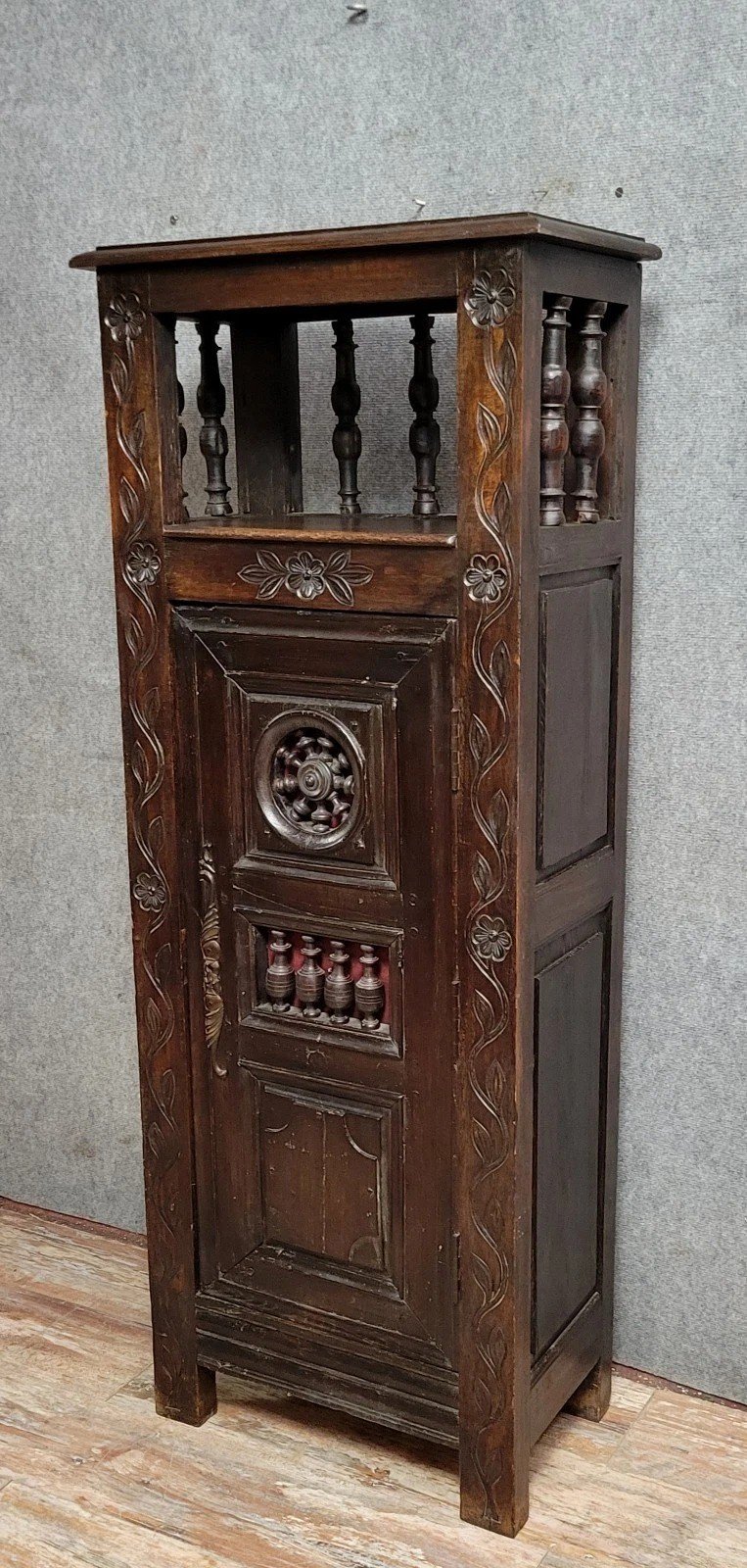 Breton bonnetière in solid carved oak, 19th century, circa 1850