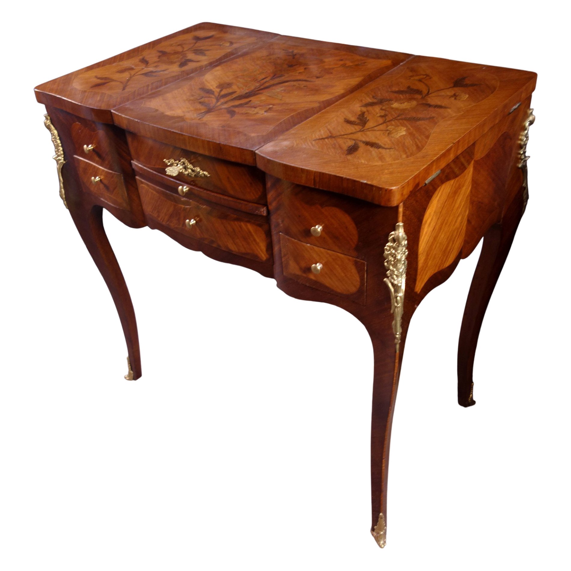Rosewood marquetry dressing table with floral motifs.