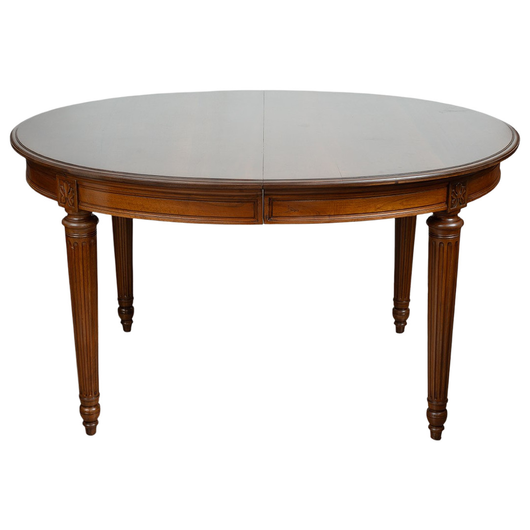 Table ovale Napoléon III en noyer massif, datant de la seconde moitié du XIXe siècle.