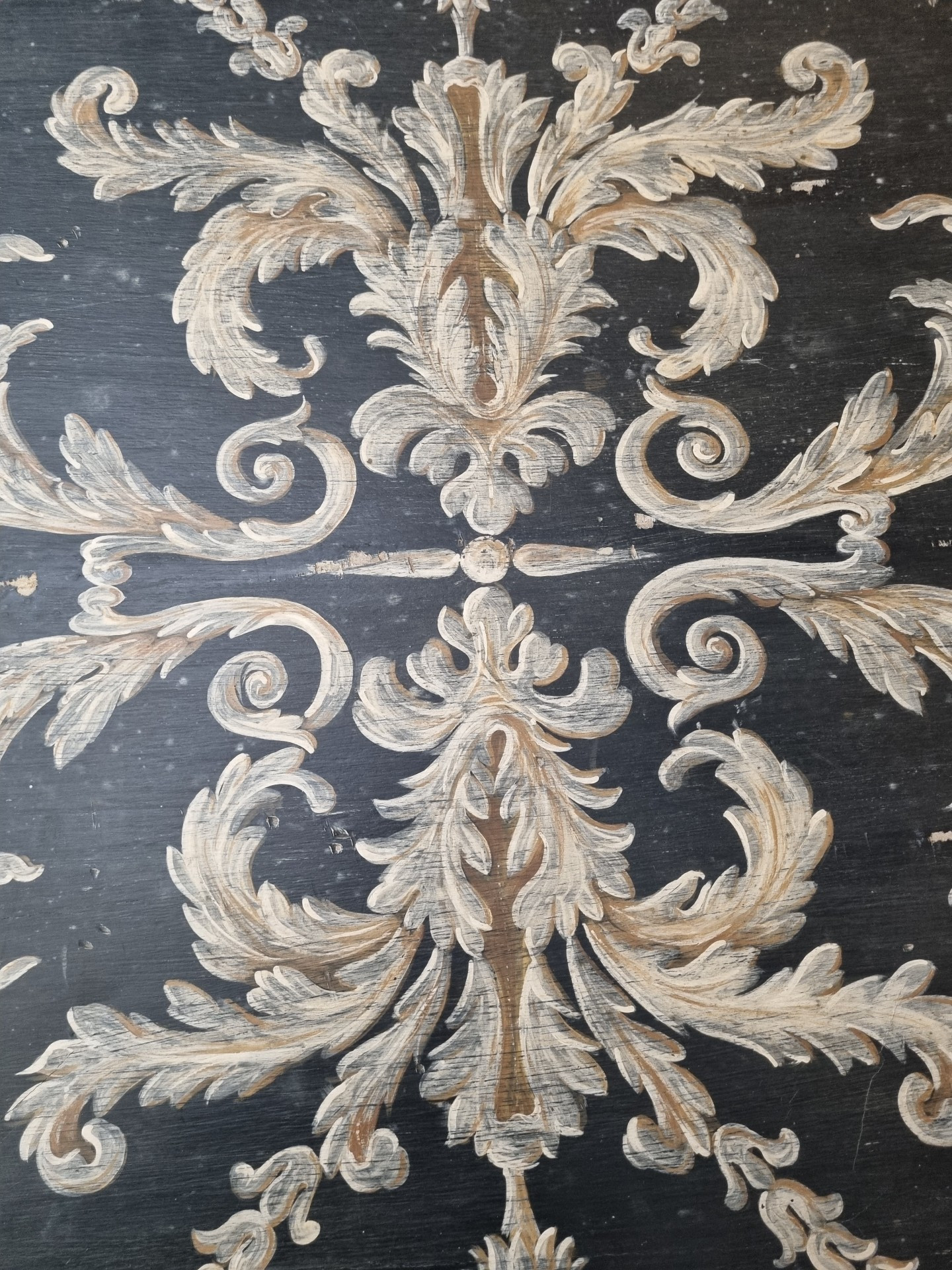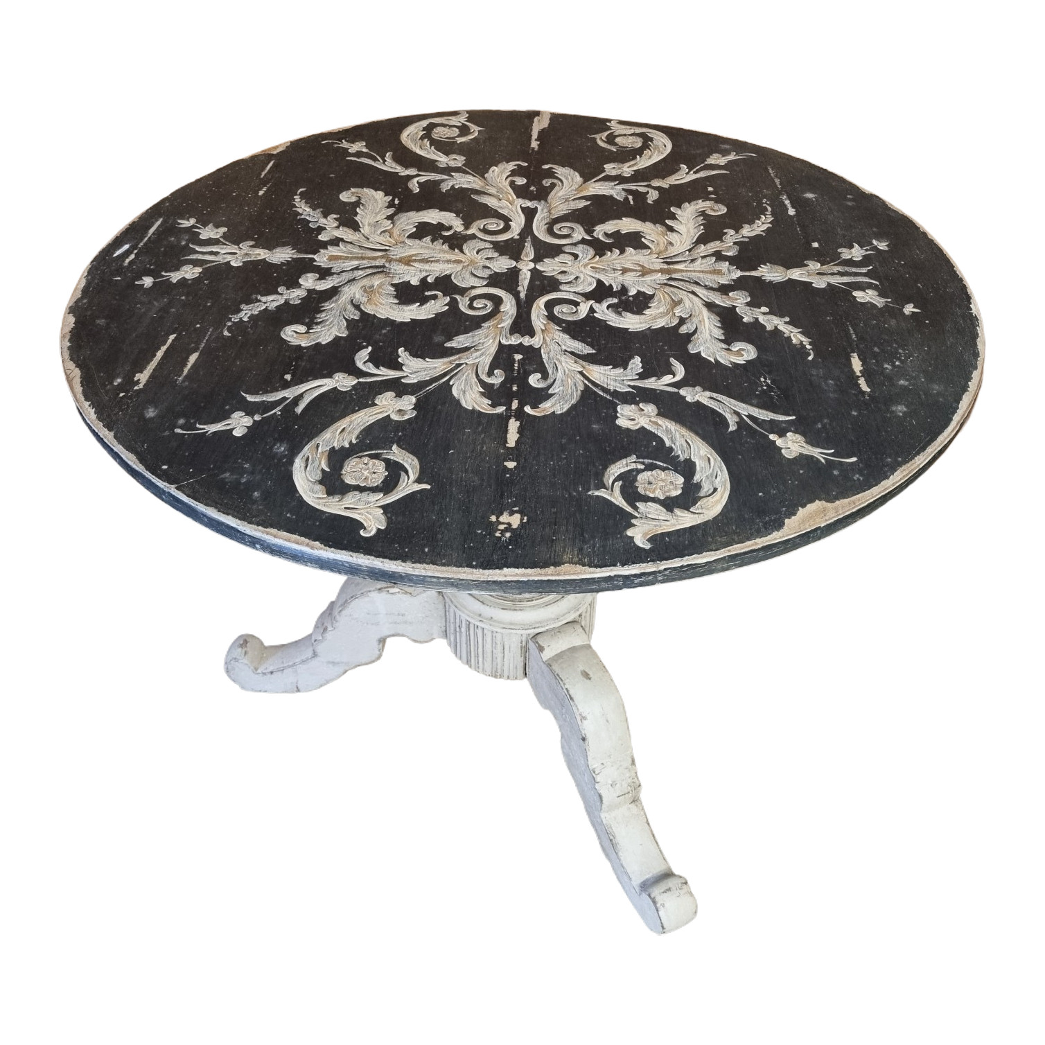 The base and top have been painted in the workshop, as well as the decoration and patina. The top is waxed.