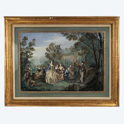 Garden party, framed watercolor, late 19th century