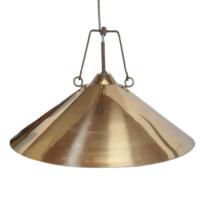 Brass flared pendant light. The lighting system is complete, with new wire, socket and socket cover also in brass. It's electrified and the cable is about 2 meters long.