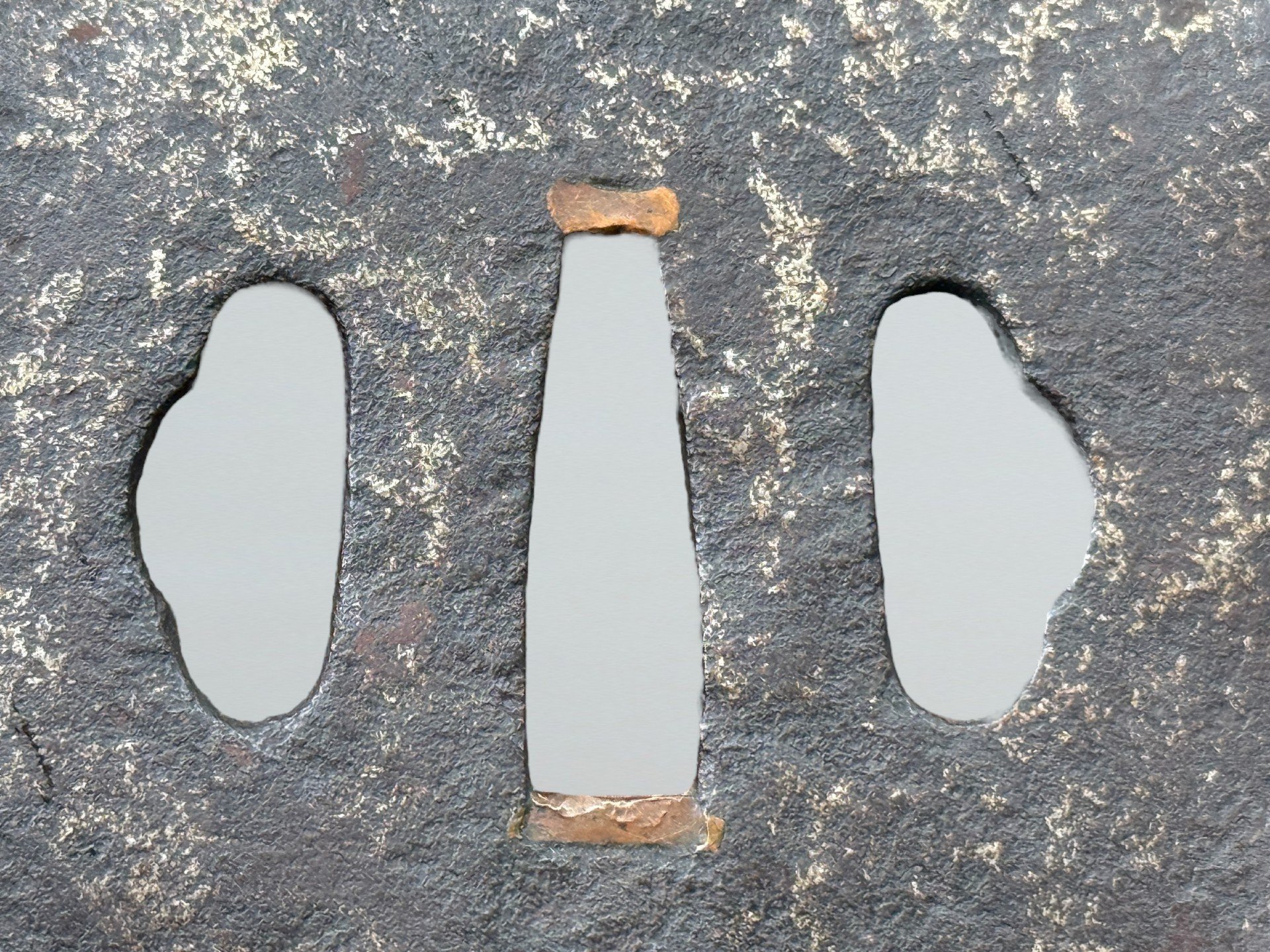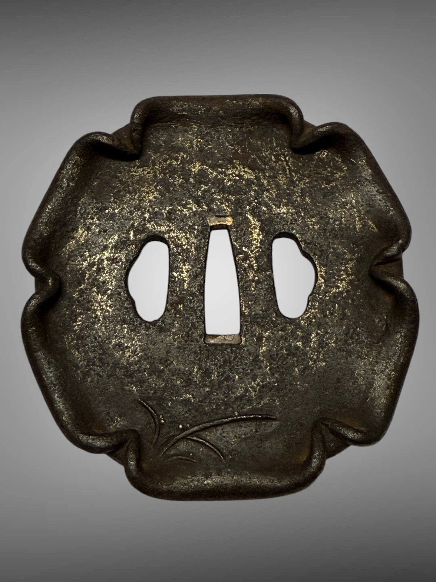 Wrought-iron tsuba (tetsu nikubori tsuba).