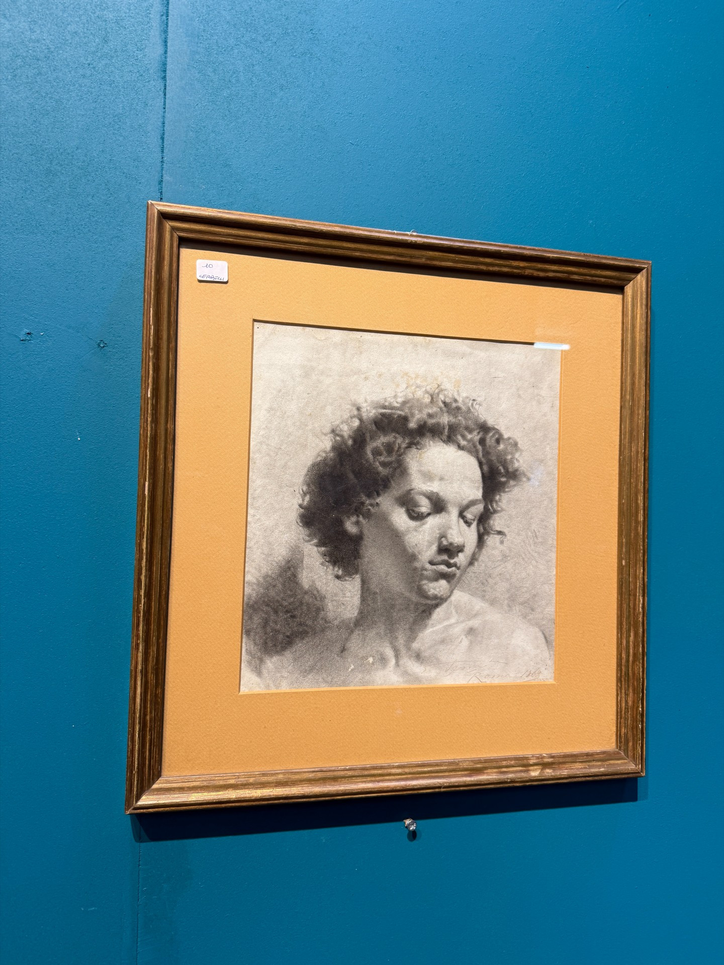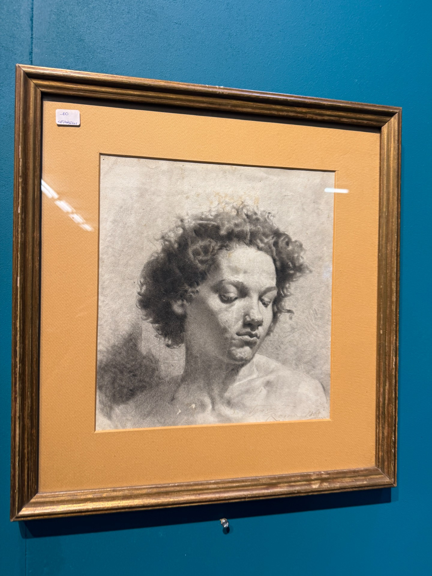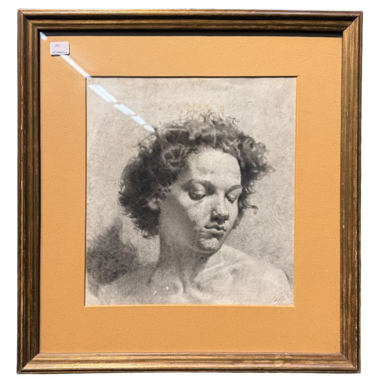 Antique drawing "Young Man of Rome", Sezza Luigi, 1869, 24x26cm