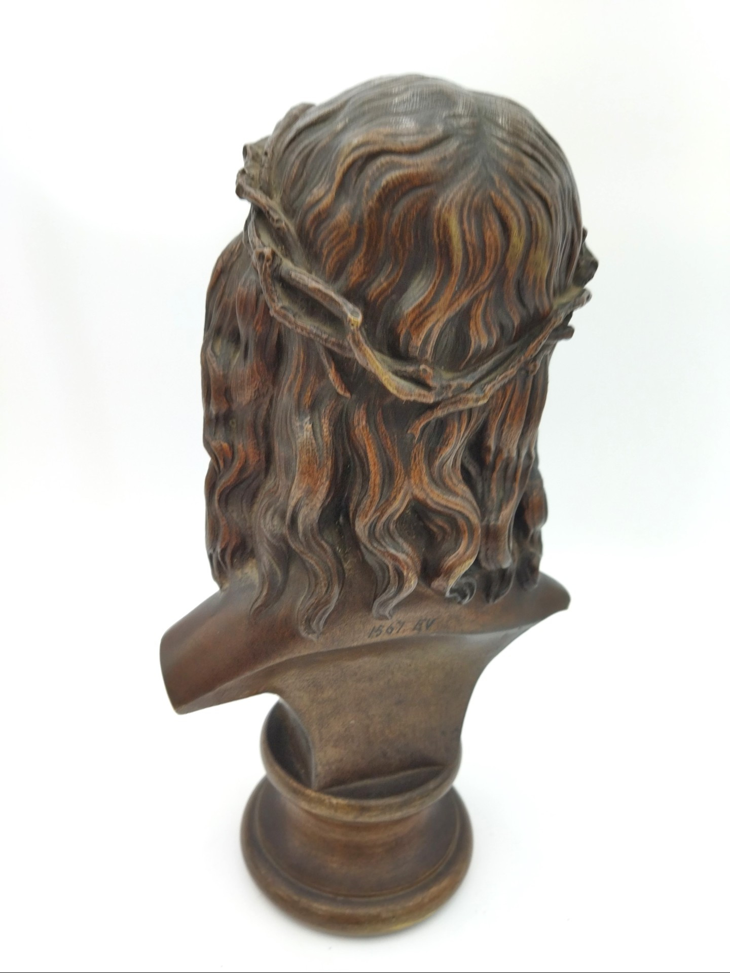 Bronze bust of Jesus Christ. Good condition with slight signs of age, including minor rubbing on the base. High-quality craftsmanship with a lovely period patina. A liturgical object suitable for display and collection.