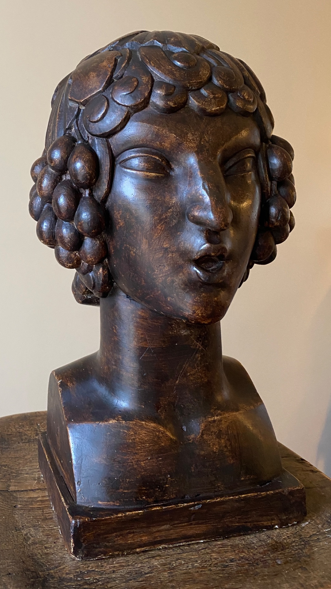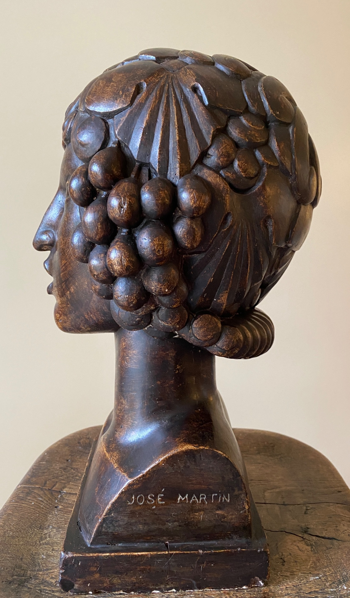 José Martin for Sue et Mare (Compagnie des Arts Décoratifs). Bust of a young Bacchus or Faun. Original plaster with a brown patina. Signed José Martin.