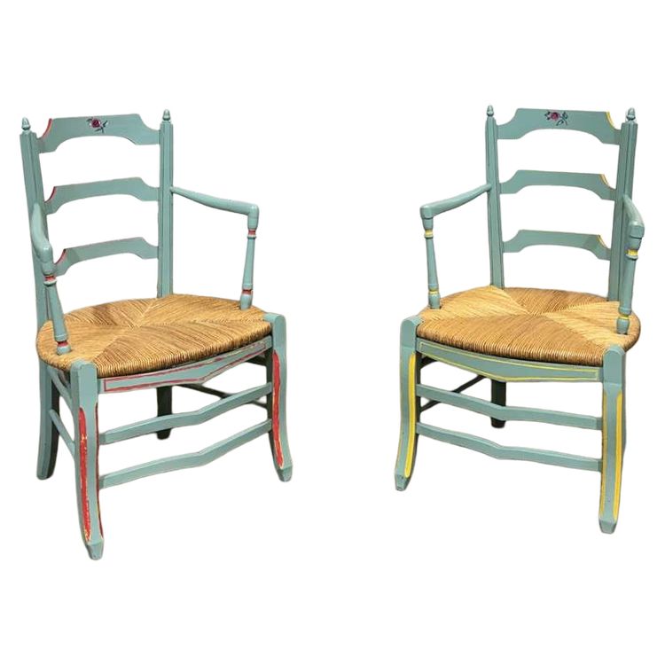 Pair of rustic beechwood armchairs with straw seats - work from the 1930s