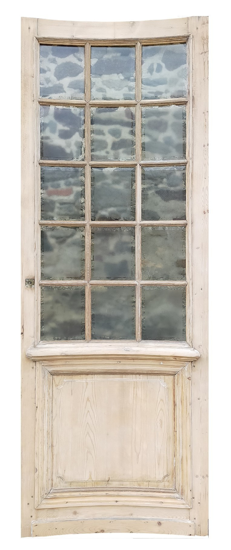 Ecco due superbe porte vetrate antiche del XIX secolo con l'insolita caratteristica di essere curve e con vetro opaco, con solo gli smussi periferici del vetro trasparenti. Sono in ottime condizioni, sverniciate, con tutti i vetri originali presenti e senza scheggiature.