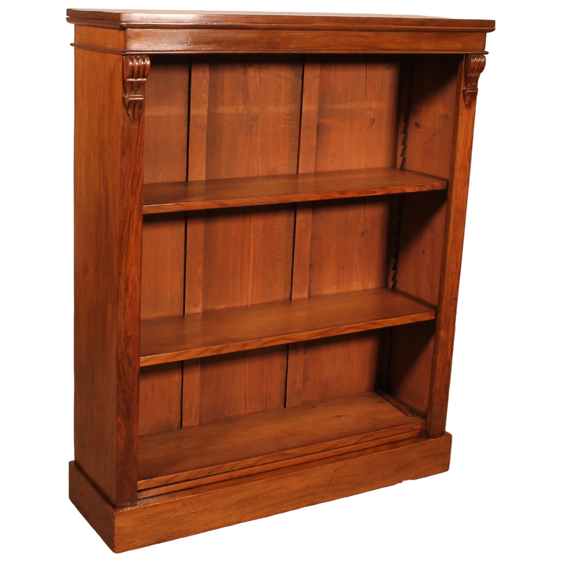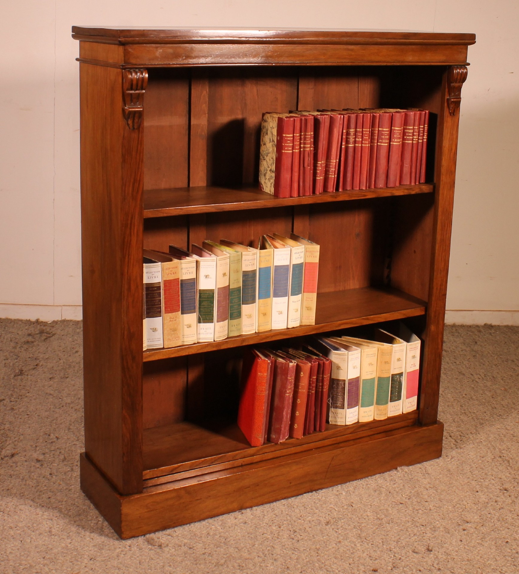 Bellissima e insolita piccola libreria decorata con due intagli sui due stipiti.