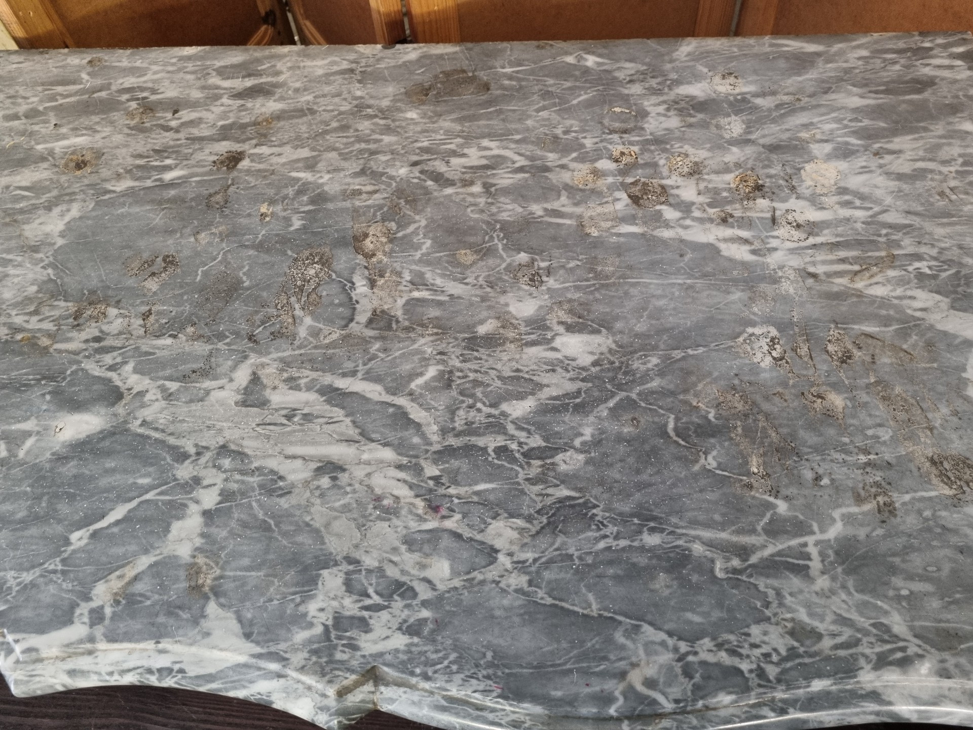 Bellissimo comò con piano in marmo dello spessore di 2,5 cm. Maniglie uniche. Buone condizioni generali.
