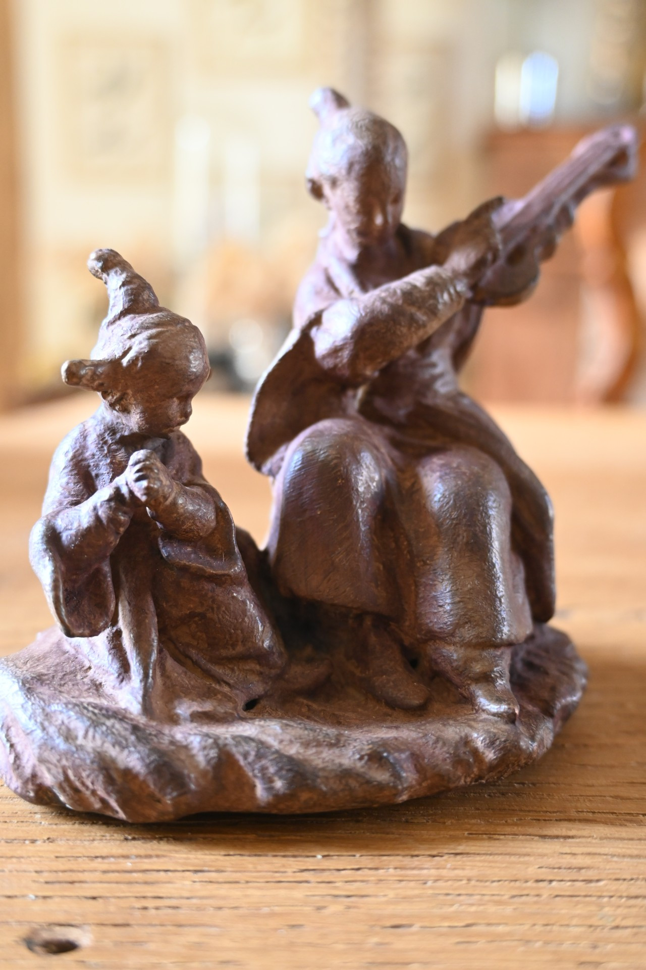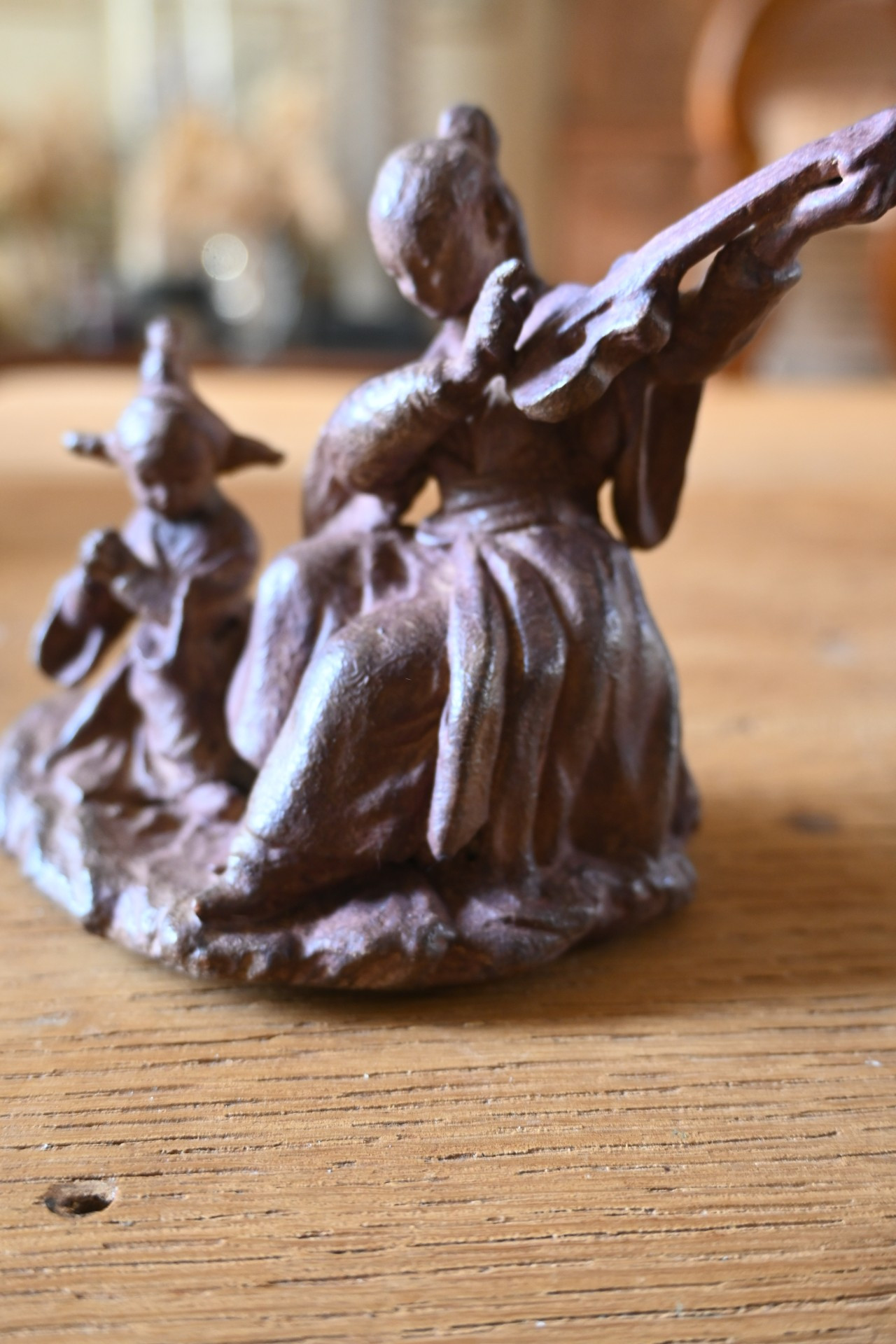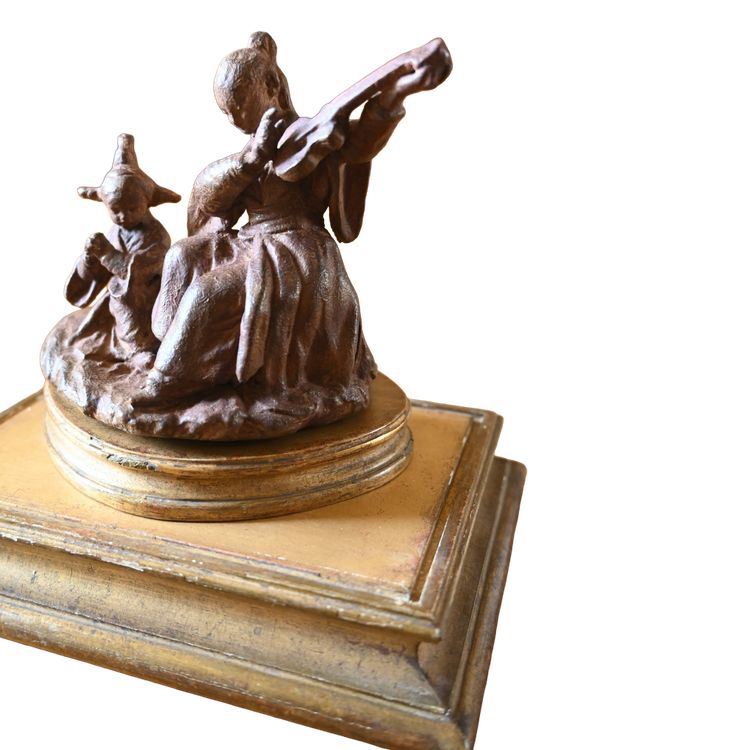 Affascinante piccola terracotta, raffigurante una lezione di musica, dove si vede una Giovane donna che suona la chitarra e un ragazzo tutto con la sua attenzione, i due vestiti con il modo della Cina, piccolo soggetto ispirato alle opere di François Boucher, come il concerto cinese, e tratto dalle opere di quest'ultimo, come gli arazzi, la pittura e o la terracotta.